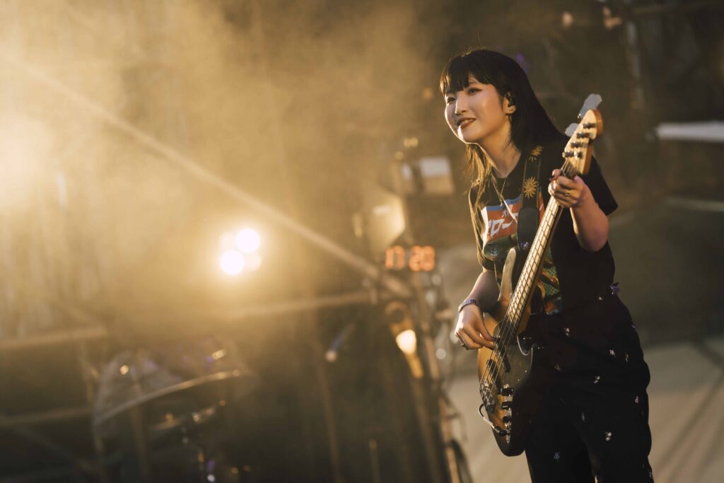紬衣: 觀眾享受音樂的方式很不一樣。今天我看到有人在吹泡泡,也看到有一群人聚在一起瘋狂地跳躍。在日本的音樂祭上,我從來沒有看過有人吹泡泡(笑),感覺在台灣,每個人都有自己獨特享受音樂的方式。
