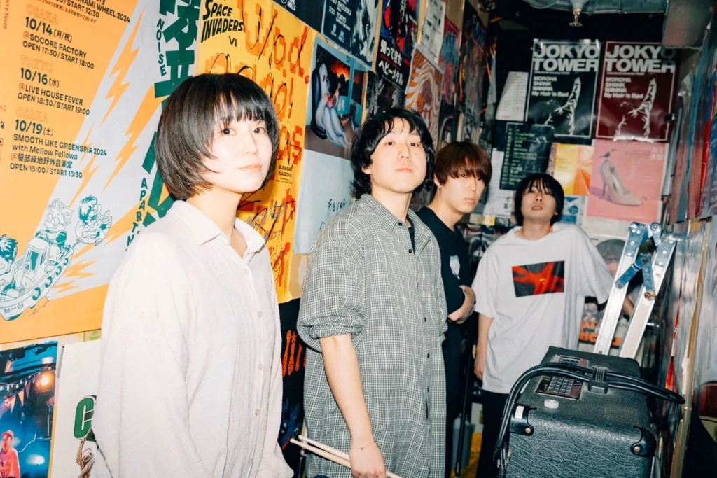 (L→R)ながいひゆ(Gt./Vo.)、福間晴彦(Dr.)、藤本栄太(Gt./Vo.)、後藤旭(Ba.)